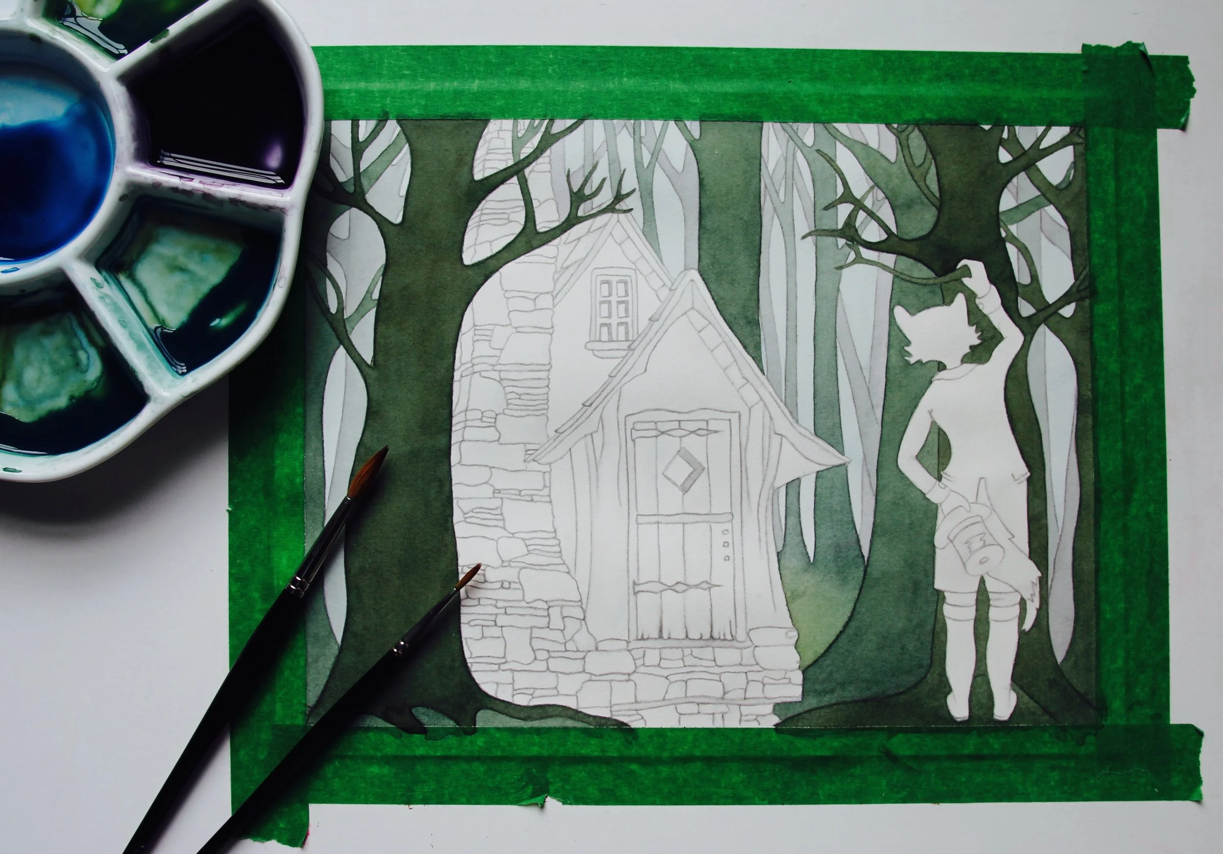 Watercolour Paint for Childrens Book Illustration of Forest Creatures