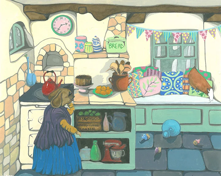Anthropomorphic Mouse in Shabby Chic Cottage Kitchen with Aga Watercolour Painting